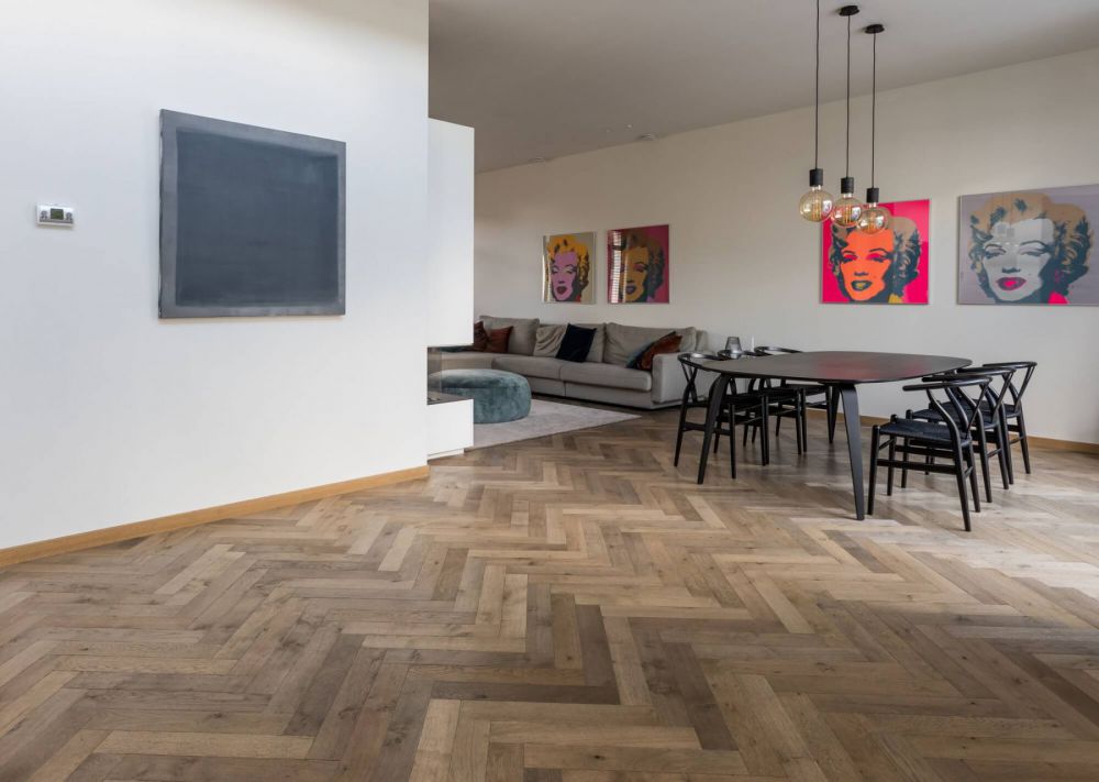 Deze parketvloer is bovendien ook zeer onderhoudsvriendelijk. Een deukje meer maakt de vloer zelfs nog authentieker.