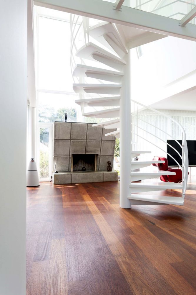 Voor de renovatie van hun woning kozen de eigenaars bewust voor een warme merbau plankenvloer in de 100 m² leefruimte.